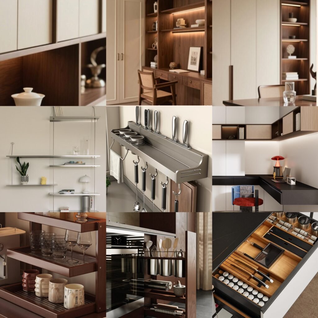 From wardrobes and cabinets to kitchen baskets, wall-mounted organizers, and essential hardware like handles, hinges, and drawer slides, Zhemoo delivers tailored solutions that blend design and function. Backed by ODM/OEM expertise and global export experience, we help you bring ideas to life — with catalogs and quotes available on request.