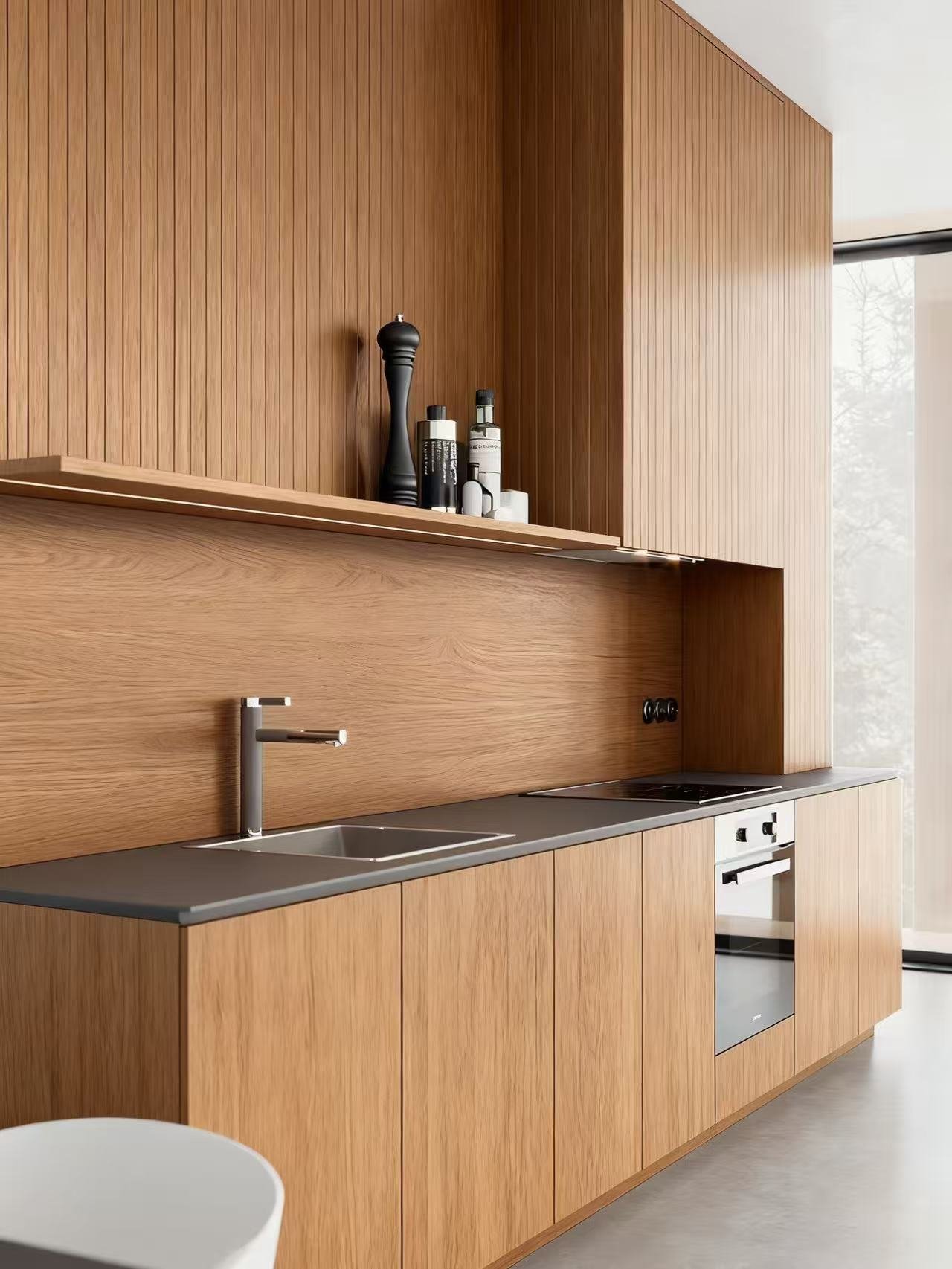 Kitchen Cabinets-Natural wood veneer